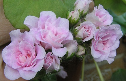 Плющелистная пеларгония - вечнозеленое ампельное растение со свисающими или стелющимися побегами длиной 35-70 см. Листья плющевидные, мясистые, блестящие с восковым налетом. Цветки на длинных цветоносах, простые, махровые или полумахровые, собраны в пышные шапки-соцветия.
